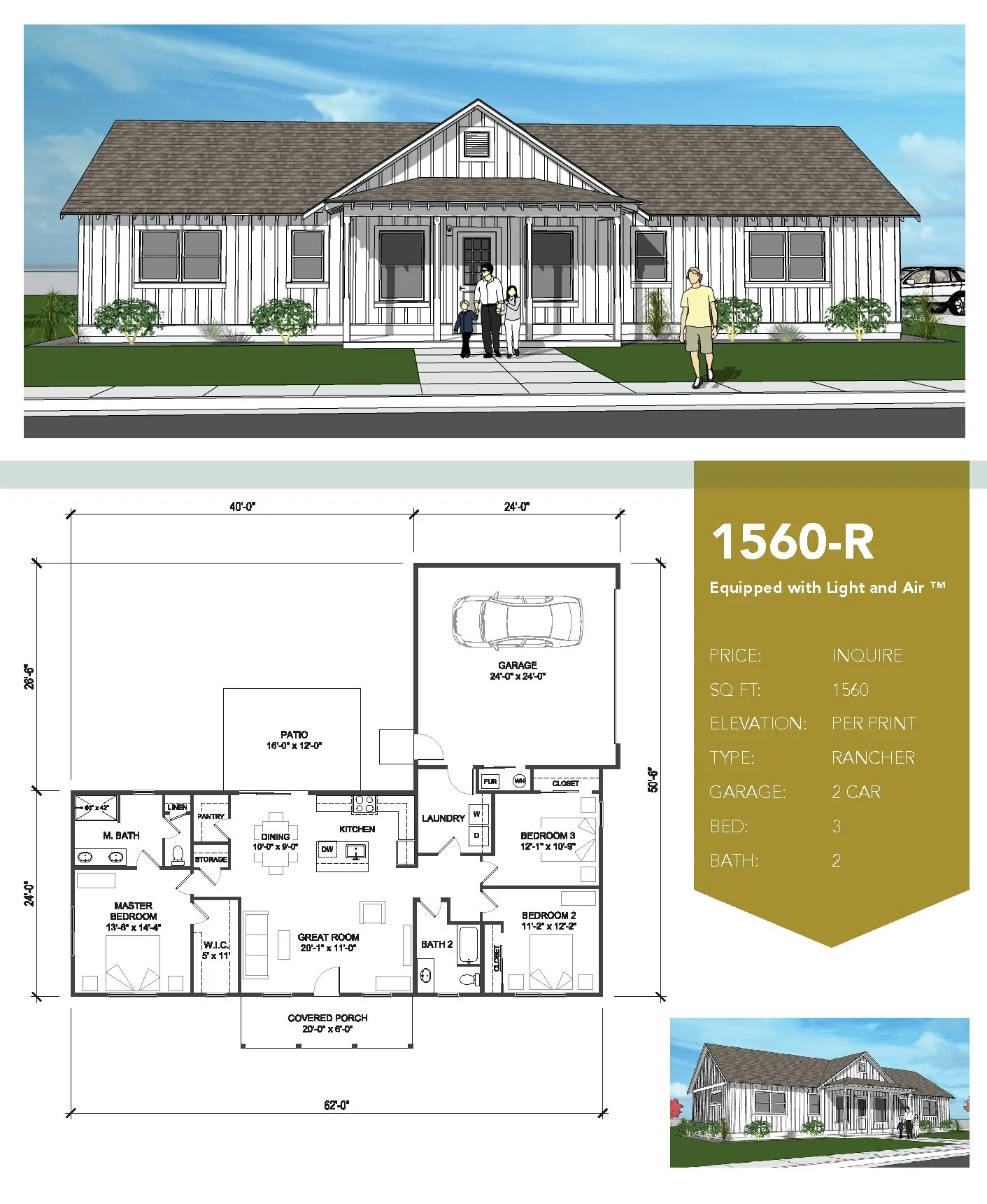 Pelan Rumah 1 Tingkat 4 Bilik Tidur 3 Bilik Air Banglo 2152 Kaki Persegi